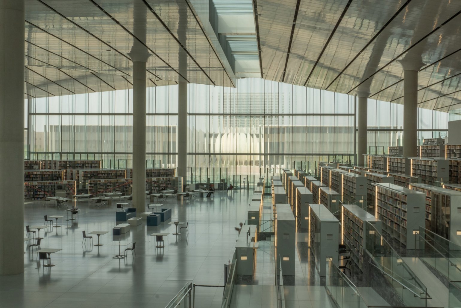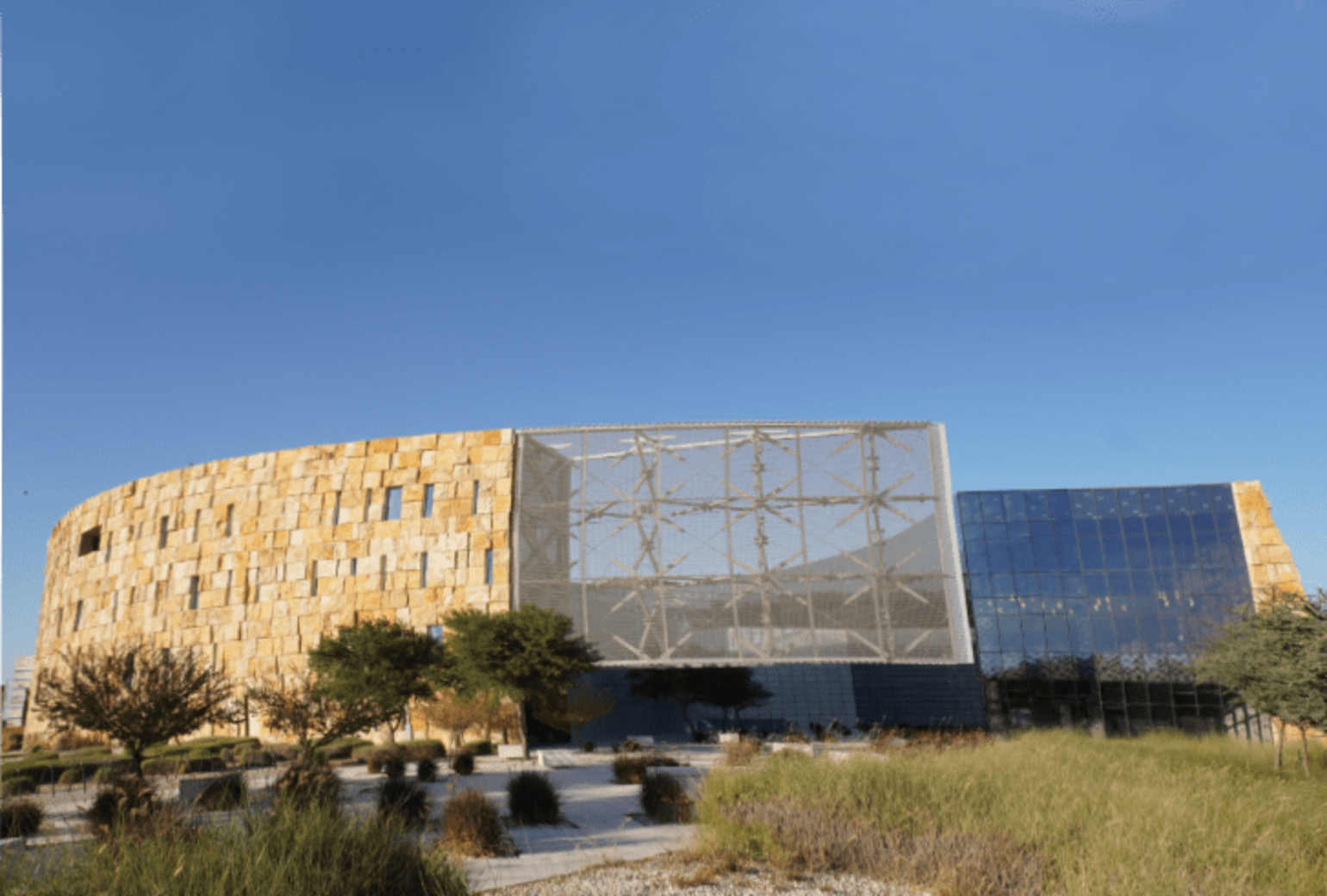 The Medbay (which houses Weill Cornell Medicine-Qatar) and Qatar National Library (QNL) buildings are polar opposites of each other. The former is one of the earliest buildings in Education City while the latter is one the newest. This becomes evident in their designs. Medbay is more introverted; it has few windows on the outside because when it was being built, the view from inside was predominantly of open desert and construction. On the other hand, the newly constructed QNL building has huge windows that offer vistas of the surrounding campus.
